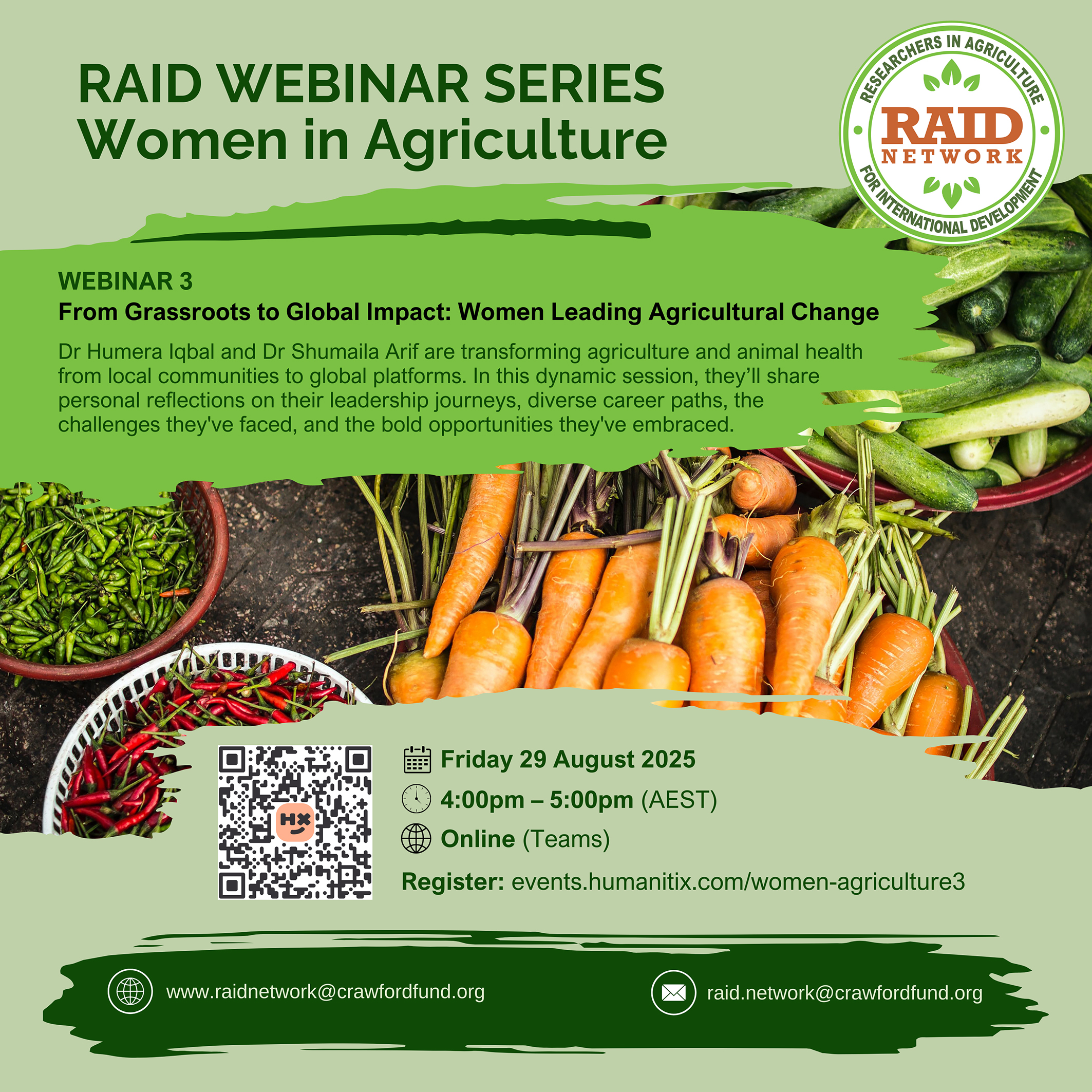 Whether you’re an early or mid-career researcher, practitioner, or simply passionate about inclusive and sustainable agriculture, this webinar promises honest reflections and practical wisdom. Humera and Shumaila will speak candidly about breaking barriers, building networks, and the moments that shaped their careers.